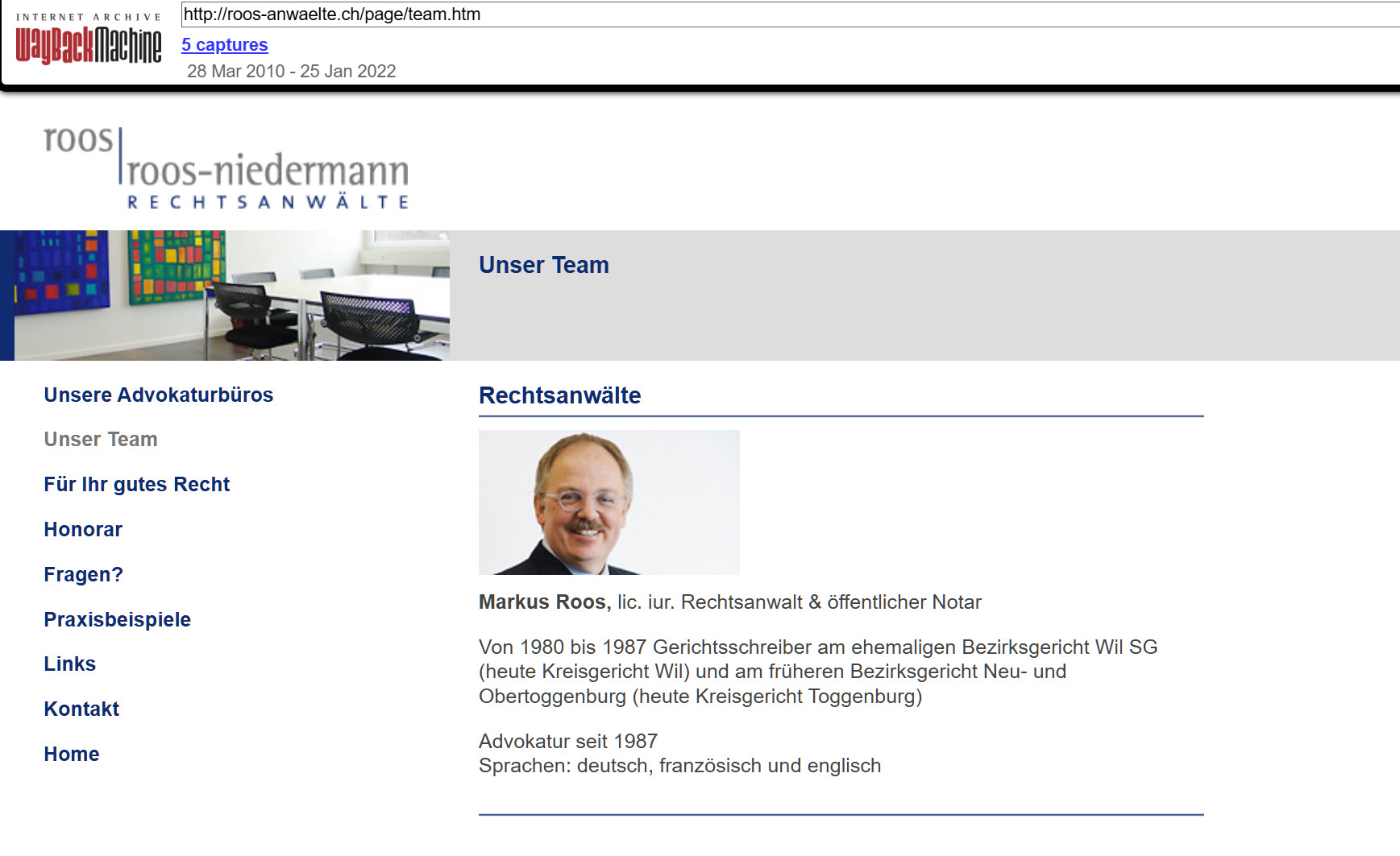 Bis zum Auffliegen der Affäre galt Roos als Musterjurist. „Geradlinig“ beschrieben ihn Zeitungen, als bodenständigen Mann mit starkem ehrenamtlichem Engagement im Toggenburg. Viele vertrauten ihm blind.